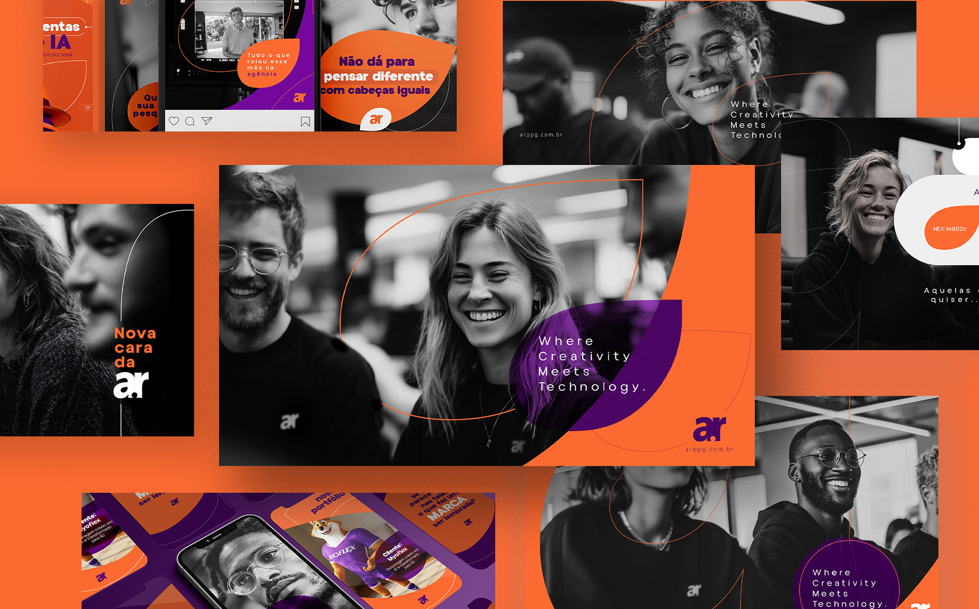 Projeto realizado para a agência Arppg, com foco na renovação de sua identidade visual, a fim de refletir uma imagem mais tecnológica, contemporânea e alinhada à atuação cada vez mais digital da marca.